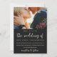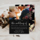 Beautiful and elegant moody floral photo wedding invitation. This elegant invitation is a chic way to let invited guests know of your upcoming marriage ceremony. Pretty "the wedding of" calligraphy script sits on a dramatic dark black background with the couple's photo, and a dramatic botanical flower pattern covers the back of the card.