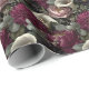 A luxurious and intricate seamless pattern featuring a bouquet of flowers in a dark, moody style. The composition includes large, deep burgundy and dark purple dahlias, elegant white calla lilies, and soft pink peonies. The foliage is a mix of muted gray-green leaves and delicate berries, all set against a solid black background. The rich colors and detailed textures give the image a dramatic and vintage feel.