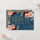 Moody Glam Blue Gold Pink Roses Bridal Shower Invitation