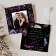 Elegant floral wedding invitations featuring a top and bottom border of purple and burgundy flowers, lush green foliage, and dark berries. "The Wedding Of" is displayed in elegant, modern typography. Personalise the purple floral wedding invitation with your names and wedding details. The invite reverses to display your square engagement photo framed in black with a purple floral pattern. The square wedding invitation coordinates with our Moody Gothic Floral wedding collection.