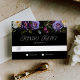 Elegant moody floral wedding RSVP card featuring a bouquet of purple and ivory flowers, lush green foliage, and dark berries at the top of the design. "Kindly Reply" is displayed in elegant, modern typography. Personalise the gothic wedding RSVP enclosure card with your desired response date. The unique RSVP card reverses to display a matching floral pattern. The design coordinates with our Moody Gothic Floral wedding collection.
