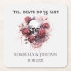 Moody Gothic Skulls 'till death do us part Wedding Square Paper Coaster