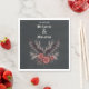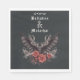 Dark moody, gothic wedding napkins with names and dated in Old English Goth calligraphy - charcoal black background with an open winged black bat and dried floral spray in woodrose and black- easy to customise template - Designed by WhimsicalArtwork™ for theBarefootBride ™.