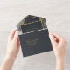 Your dreams are finally coming true and this flowing, alcohol ink abstract design sets the perfect tone for the fabulous wedding you always imagined. In shades from charcoal to black accented with glittering gold, the all-in-one wedding invitation shown here provides a template to easily add your own event details and RSVP requirements. Search ID988 to see other pieces in this coordinated wedding set.
