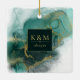 Your dreams are finally coming true and this flowing, alcohol ink abstract design sets the perfect tone for the fabulous wedding you always imagined. In shades from sea glass green to dark emerald, accented with glittering gold, the coordinating ornament design shown here provides a template to easily add your initials and wedding date. Search ID988 to see other pieces in this coordinated wedding set.
