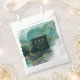 Your dreams are finally coming true and this flowing, alcohol ink abstract design sets the perfect tone for the fabulous wedding you always imagined. In shades from sea glass green to dark emerald, accented with glittering gold, the coordinating favour bag shown here provides a template to easily add your initials, wedding date and thank you message. Search ID988 to see other pieces in this coordinated wedding set.