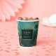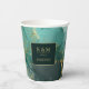 Your dreams are finally coming true and this flowing, alcohol ink abstract design sets the perfect tone for the fabulous wedding you always imagined. In shades from sea glass green to dark emerald, accented with glittering gold, the coordinating paper cup shown here provides a template to easily add your initials, wedding date and thank you message. Search ID988 to see other pieces in this coordinated wedding set.