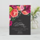 Moody Luxe Floral Vibrant Pink Black Wedding Invitation