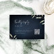 Moody navy minimal greenery wedding QR code RSVP Card