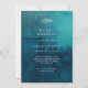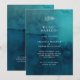 This moody ocean watercolor elopement announcement is perfect for your simple tropical boho elopement. It is designed with minimalist white tropical leaves and a stunning dark blue-green background.