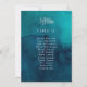 This moody ocean watercolor table number seating chart is perfect for your simple tropical boho wedding. It is designed with minimalist white tropical leaves and a stunning dark blue-green background.