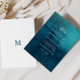This moody ocean watercolor wedding invitation is perfect for your simple tropical boho wedding. It is designed with minimalist white tropical leaves and a stunning dark blue-green background.