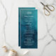 This moody ocean watercolor wedding program is perfect for your simple tropical boho wedding. It is designed with minimalist white tropical leaves and a stunning dark blue-green background.
