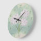 Accent the decor of your space with this pretty pastel floral round wall clock. This clock features a moody watercolor design of pastel orchids on a green background. Buy this shabby chic clock for yourself or buy it as a housewarming or another occasion gift for that special someone