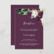 This moody plum purple wedding reception insert card is perfect for a modern wedding. The elegant floral design features dark plum purple and white tulip flowers with emerald green leaves and gold leaf accents. Personalise this detail enclosure card with your reception information and include your wedding website address too!