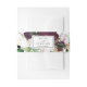 This moody purple blooms wedding invitation belly band is perfect for a modern wedding. Personalise these paper belly bands with the names of the bride and groom and the wedding date. The elegant floral design features dark plum purple and white tulip flowers with emerald green leaves and gold leaf accents.