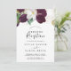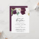 This moody purple blooms wedding reception invitation is perfect for a modern post elopement party. The elegant floral design features dark plum purple and white tulip flowers with emerald green leaves and gold leaf accents. RSVP cards are sold separately, or you can add RSVP info to the back of the card.