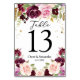Moody & Rustic Burgundy Watercolor Flowers & Leaf Table Number