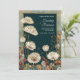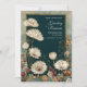 Capture the magic of a starlit garden with this breathtaking botanical design. The centerpiece is a deep, velvety teal rectangular panel, framed by a sophisticated double gold foil border that catches the light beautifully. Striking white Astrantia blooms (Masterwort) anchor the composition, their intricate petals detailed with delicate golden centers. The background features a dreamy, textured watercolor wash in shades of emerald and seafoam green, accented by a whimsical dusting of shimmering gold stardust. Earthy maroon and terracotta wildflowers cluster at the base, providing a grounded, organic contrast to the nocturnal jewel tones. This design is a premier choice for a moody evening wedding, an upscale winter solstice ceremony, or a sophisticated garden gala. It is particularly well-suited for couples planning a "midnight botanical" theme or an event in a historic estate where deep jewel tones and metallic accents take center stage. The atmospheric contrast between the dark teal and bright white florals sets a formal, romantic tone for any high-end celebration.