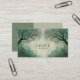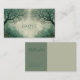 Evoke a sense of mystery and moody elegance with this atmospheric winter forest business card. The design features two magnificent, gnarled trees with intricate, bare branches that create a dramatic natural frame around a central textured background. Rendered in a sophisticated, muted colour palette of sage green, deep teal, and grey, the painterly style gives the scene a hauntingly beautiful and artistic quality. A delicate, thin gold line borders the entire card, adding a final touch of understated luxury.