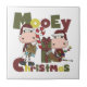 Two cows in red stocking caps, Christmas gifts, holiday lights, candy canes, and text that reads "Mooey Christmas" on holiday T-shirts, mugs, cards, stickers, tote bags, wall clocks, keepsake boxes, ornaments, keychains, and other cute cow theme holiday apparel and gifts.