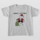 A cow dressed in a Santa suit with a big green bag and text that reads "Mooey Christmas" on holiday t-shirts, mugs, cards, stickers, tote bags, mousepads, and much more.