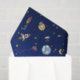 Moon Adventure Tissue Paper - Cartoon style illustrations of all sorts of things you might find in outer space-- rocket ships, UFOs, satellites, stars, planets, moon, and earth. Watch your little space explorer's eyes light up when they see their gift wrapped in this adorable Moon Adventure Tissue Paper.