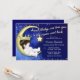 We love you to the moon and back baby boy shower invitations. This elegant night time moon and stars baby boy shower invitation is easily customised for your event. You can add your event details in the font style and wording of your choice.