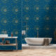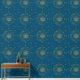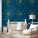 This stunning wallpaper combines the opulence of gold with the deep, serene hue of dark teal blue, creating a luxurious and enchanting backdrop. At the centre of the design, a radiant crescent moon gleams with golden splendour, casting a celestial charm. Accentuated with symbolic evil eyes and shimmering star motifs, the wallpaper exudes an aura of protection and mystique. The intricate patterns and rich colours blend harmoniously, making this wallpaper an ideal choice for creating a sophisticated and captivating space that evokes both elegance and a sense of wonder.