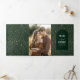 Step into a world of magic with this emerald green tri-fold wedding invitation, where your love story meets the cosmos! Perfect for themes like 'Under the Stars,' 'To the Moon and Back,' or 'Written in the Stars,' this invitation is a seamless fusion of personal moments and celestial wonder. Featuring spaces for your cherished photos, you can customise each panel with different images or keep a cohesive look with the same snapshot throughout. You can also swap out the starry pattern on the front for another photo, or replace the photo in the arch frame inside with more detailed text about your big day. For tech-savvy convenience, the RSVP can be personalised with your own QR code - just swap in your URL in the editing tool.