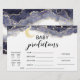 Watercolor black gold midnight celestial moon and stars baby shower games, baby predictions stationery.