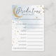 Use this card at your shower for a fun activity with your guests. Add your information on the template form. The advanced editing menu, allowing you to change the colours and the fonts, can be accessed by choosing to customise further.