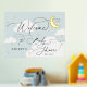 Moon and Stars Blue Clouds Welcome Baby Shower Foil Prints