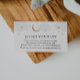 A book request insert card for baby shower. Featuring moons and stars and poem: "ONE SMALL REQUEST, WE HOPE NOT TOO HARD