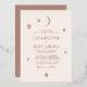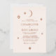 Shine bright with this celestial wedding invitation featuring elegant moon and star accents in luxurious rose gold foil. Printed on a soft cream background, this minimalist yet sophisticated design is perfect for romantic and modern weddings. Fully customisable with your names, date, and event details, it adds a timeless glow to your celebration.