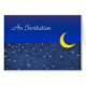 A custom folded invitation with elegant vintage art of a starry evening night with a glowing crescent moon against a dark blue sky. Click Customise It to change fonts, sizing, add or remove text and more.