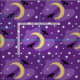 Stylish and magical Halloween fabric featuring a moon, stars, clouds, black bats, and a purple background!