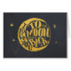 A whimsical greeting card to express your love and affection. The front says: I love you to the moon and back. The inside says: just a little note to let you know.....You rock my world! The front of the card is a design set on a black chalkboard texture with a cute anbd quirky gold crescent moon and some stars.