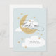 Moon and Stars Matte Blue Script Baby Shower Thank Thank You Card
