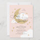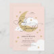 Moon and Stars Pink Elegant Script Baby Sprinkle Invitation