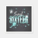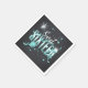You can give your daughter the moon and stars (figuratively at least!) with this fun celebration paper napkin in sparkling shades of teal on a charcoal background. Stars and planets are sprinkled liberally over a teal ribbon that winds through creative typography of 'Sweet Sixteen'. A unique and cheerful addition to your table decor. Search ID788 to see other products and colour options with this glam background design.
