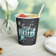 You can give your daughter the moon and stars (figuratively at least!) with this fun celebration paper cup in sparkling shades of teal on a charcoal background. Stars and planets are sprinkled liberally over a teal ribbon that winds through creative typography of 'Sweet Sixteen'. A unique and cheerful addition to your table decor. Search ID788 to see other products and colour options with this glam background design.