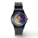 MOON ANGEL IN BLUE GOLD YELLOW SPARKLES WATCH