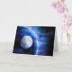 Surrealistic image of earth with the moon in front and colourful waves radiating outward into space background. By Daniel B. Holeman