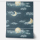 Dreamy depictions of the moon in various phases nestled in swirling clouds.