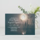 Absolutely romantic night - evening landscape rehearsal dinner invitation with full moon, dragonflies and tall marsh plant with strap like leaves and numerous tiny flowers. Perfect invite for outdoor night before wedding - rehearsal dinner inspired by whimsical and dreamy themes.