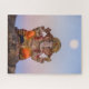 Full moon rises over a statue of the Hindu diety, Lord Ganesh. This is a 500 piece, 16" x 20" puzzle with normal piece sizes.