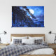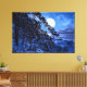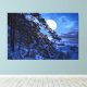 Moon over snowy fir tree and sea coast at night canvas print