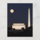 Beautiful image of Washington DC at night with the Lincoln Memorial, Washington Monument and the Capitol illuminated as the full moon rises over the buildings. A lovely present for anyone who has visited the Nation's capital