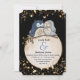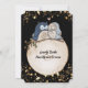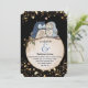 This wedding invitation features a pair of softly coloured sweetheart owls against a night sky spangled with stars. Charming and whimsical. Colours: Black, blue, tan, gold.
